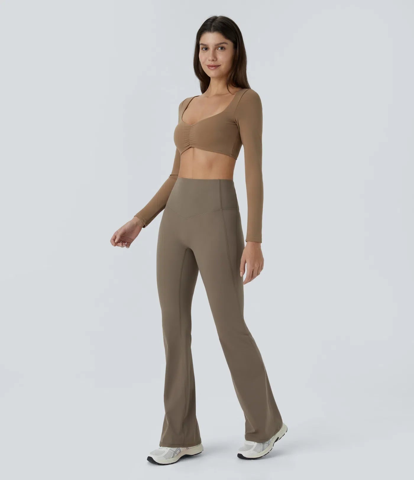 - Diseño acampanado para crear una silueta que extiende las piernas, para una apariencia estilizada.